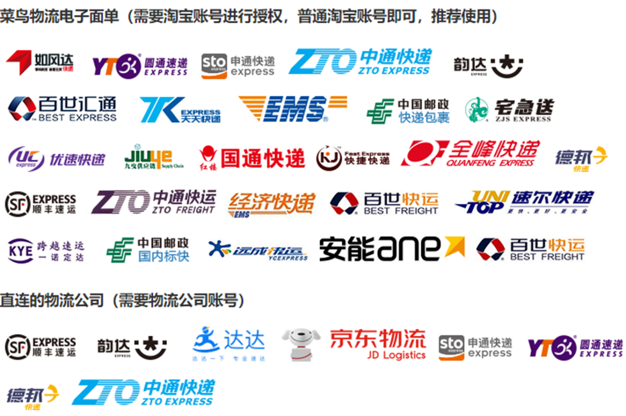 支持的物流公司